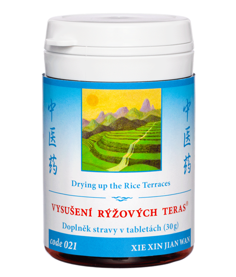 Popis dle TCM - Jedná se o modifikaci originální tradiční čínské bylinné směsi XIE XIN JIAN WAN, která je upravena na dnešní poměry. Byliny ve směsi patří k těm nejchladnějším vůbec v celé historii čínské fytoterapie, proto se používají všude tam, kde je dle TCM nadbytek horka a vlhka SHI/RE a horkých toxinů RE DU, obzvláště pak ve středním ohništi, tedy v dráze žaludku a střev. Nejčastěji tato situace nastane díky nezdravému stravování a životosprávě, a to jak jídla (kvantity či kvality - smažená, grilovaná, tučná, sladká, ostrá...) , tak i pití (alkohol, mléko, sladké limonády...). Takový stav představuje jakékoliv zánětlivé onemocnění a to jak akutní, tak i chronické v průběhu drah žaludku a tlustého střeva. Takový pacient bývá povětšinou „vlhce mastný“, s matně žlutou pletí, potí se, cítí se „těžce“, obzvláště po jídle, obtížně tráví (tzv. nebere mu to), mívá bolesti břicha po jídle a po stolici, nadýmání, nafouknutí, hojně větrů, říhání, pálení žáhy, lepkavo v ústech, afty, krvácení z dásní, paradentózu, zápach z úst, mívá řídkou stolici nebo průjem s hlenem, bolesti v obličeji, ucpaný nos nebo naopak s výtokem hustých lepkavých hlenů, žízeň bez potřeby pít, má pocit horka, v noci chrápe... V trávicím traktu se tento stav projevuje kupř. různými záněty střev (Crohnova choroba, ulcerosní kolitis), záněty žaludku (akutní a chronická gastritis), akutní a chronické průjmy, hemeroidy apod. Jelikož dráha žaludku a tlustého střeva je spojena s kůží, tak se tyto potíže promítají i na kůži, kdy hlavně pak na obličeji se objevují ve formě akné, ekzémů, seboroické dermatitidy, lupénky (i ve vlasech) apod. Jak vidno, každý z nás by čas od času potřeboval si „vyčistit svůj Augiášův chlív“, k čemuž tato směs slouží vskutku dokonale!